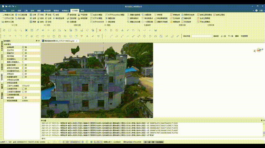 實(shí)景測圖模塊內(nèi)包含3D工程、3D視圖、投影設(shè)置、3D模型、矢量精修和房屋采集功能組,提供不同類型地物快速采集方法和策略,提高用戶作圖效率