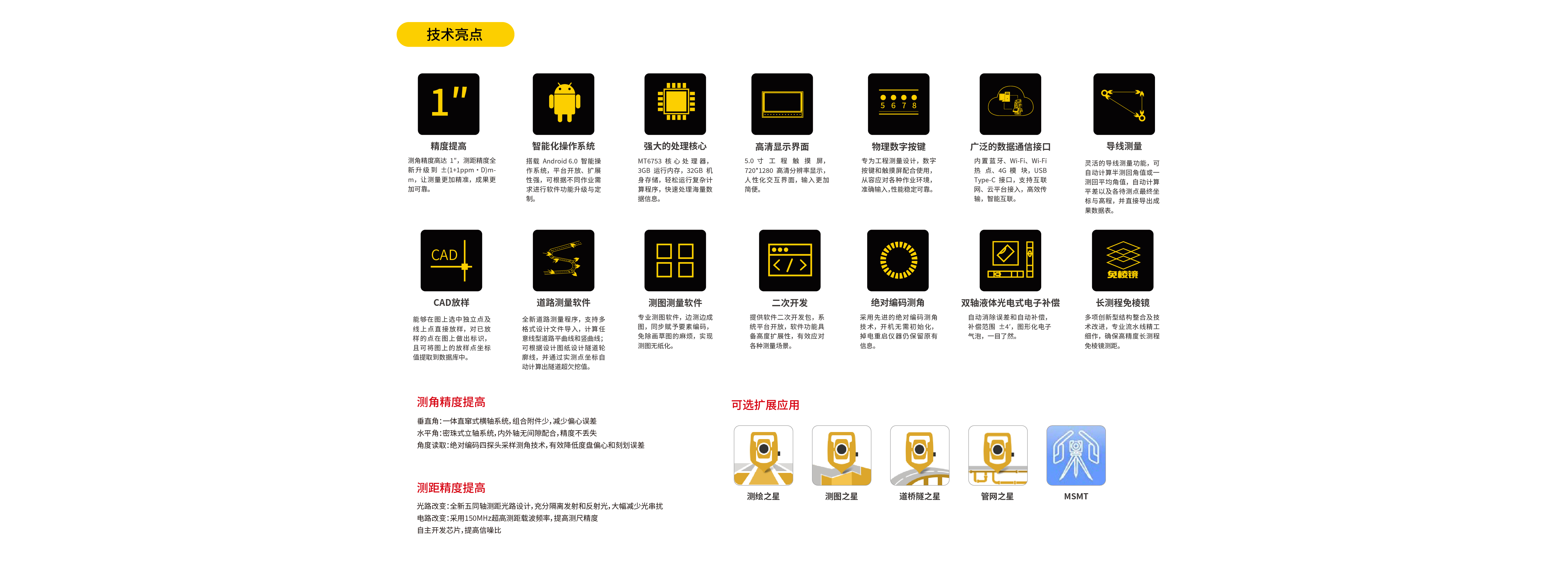 NTS-551R10國產(chǎn)高精度智能全站儀,依托南方二十多年光電儀器生產(chǎn)制造經(jīng)驗,順應(yīng)時代發(fā)展,滿足新基建要求,兼顧1″高精度的同時搭配智能安卓操作系統(tǒng)讓測量更便捷,更高效。并且南方龐大的軟件生態(tài)賦予NTS-551更廣泛的應(yīng)用,讓其在各種領(lǐng)域真正開啟1″智能新時代。